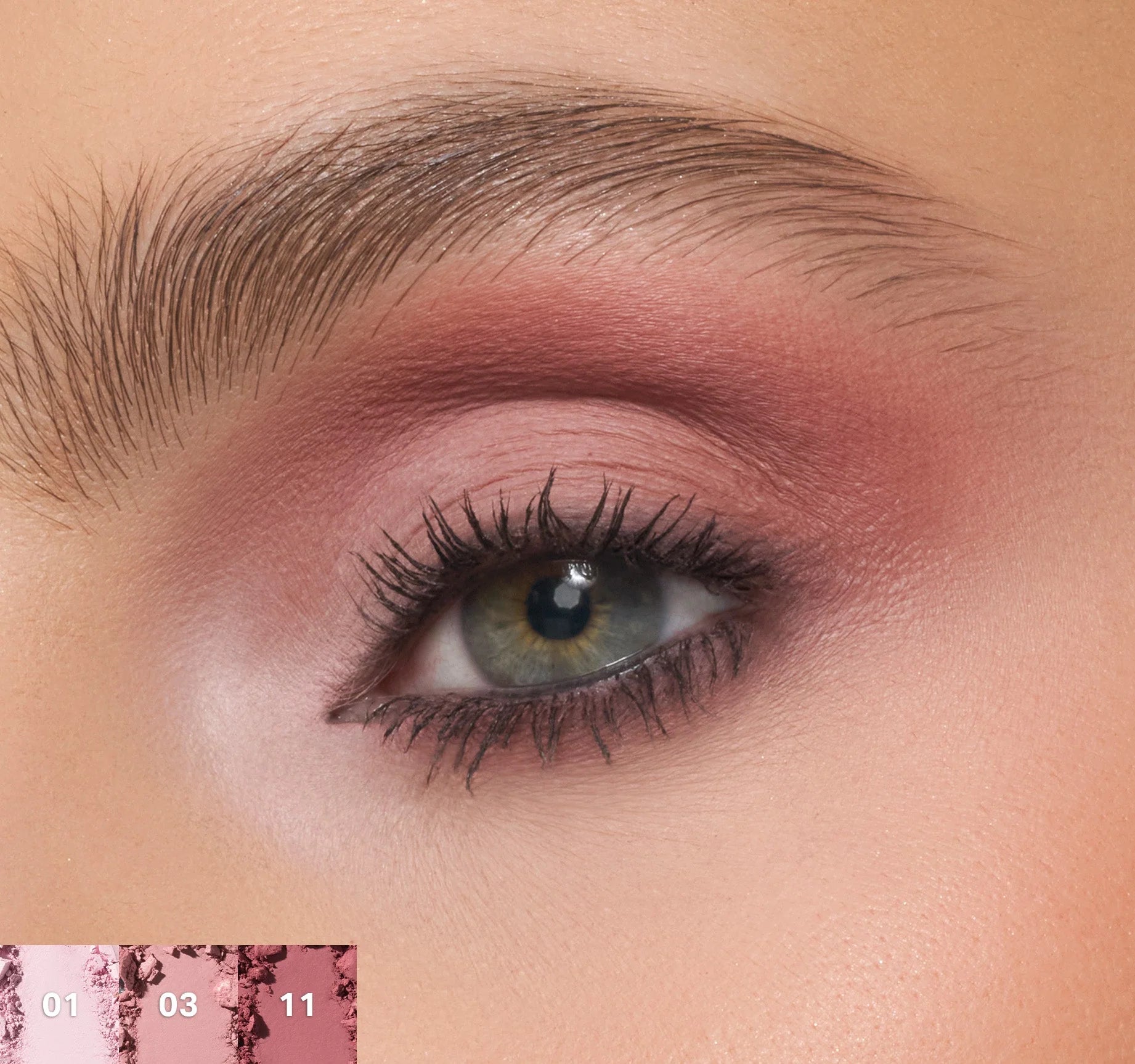 12 sombras de ojos en tonos neutros rosados, mates, brillantes y metálicos que definen la dimensión. Espejo de aplicación personal para un toque artístico en cualquier lugar. Color altamente pigmentado con una sola pasada. Aplicación uniforme, sin imperfecciones, textura sedosa y suave como la mantequilla, aplicación sin esfuerzo.