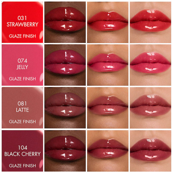 Un aceite labial ultrabrillante que aporta volumen a los labios con un efecto espejo instantáneo. Ahora disponible en 16 tonos y tres acabados brillantes.