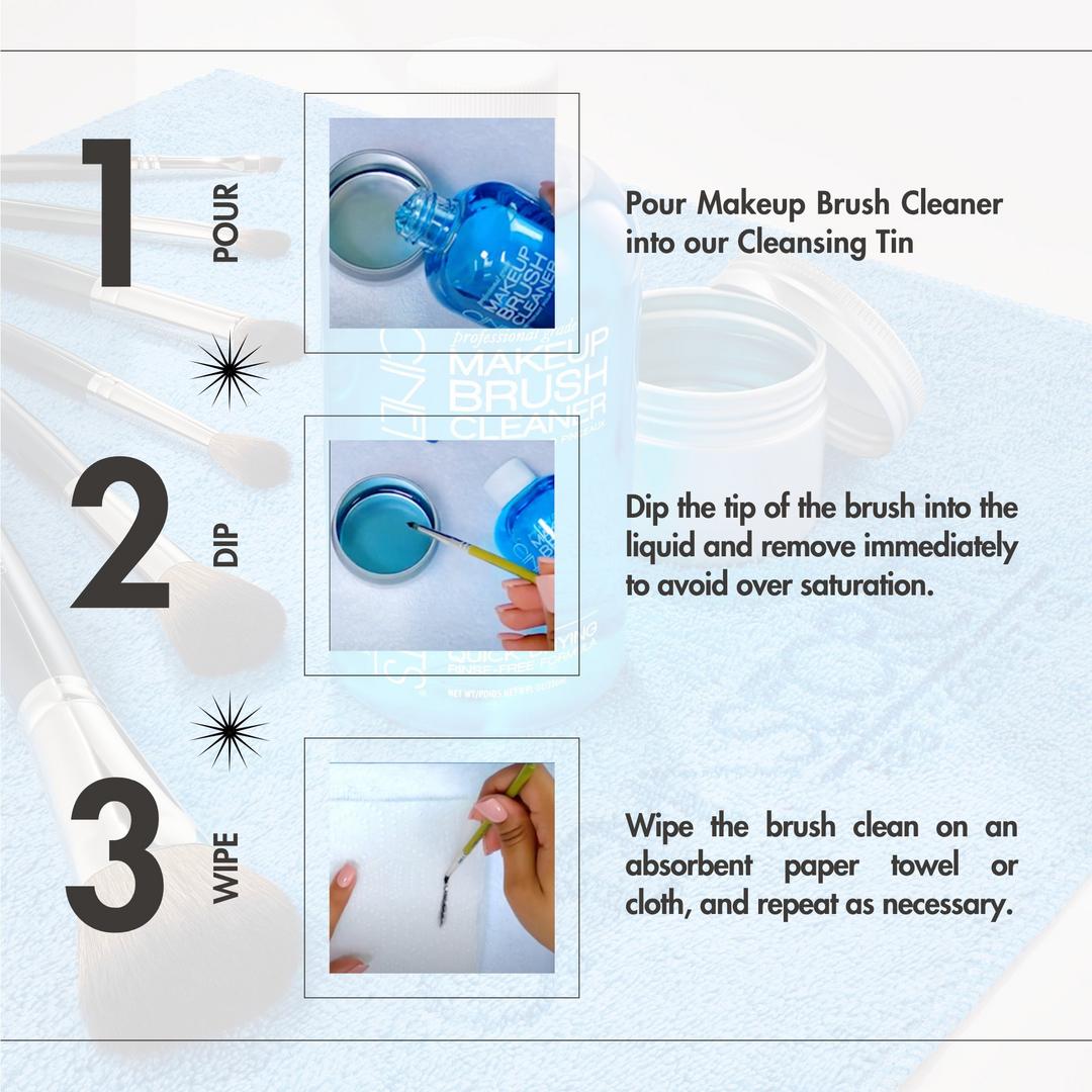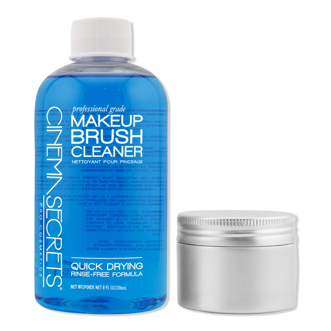 ideal para limpiar tus brochas como una profesional, con el Limpiador de Brochas de Maquillaje Cinema Secrets y su Lata Limpiadora, incluidos en el Kit de Inicio Original Pro. Elimina el maquillaje resistente al agua y de larga duración, dejando las brochas secas casi al instante, sin necesidad de agua ni enjuague, con un agradable aroma a vainilla.