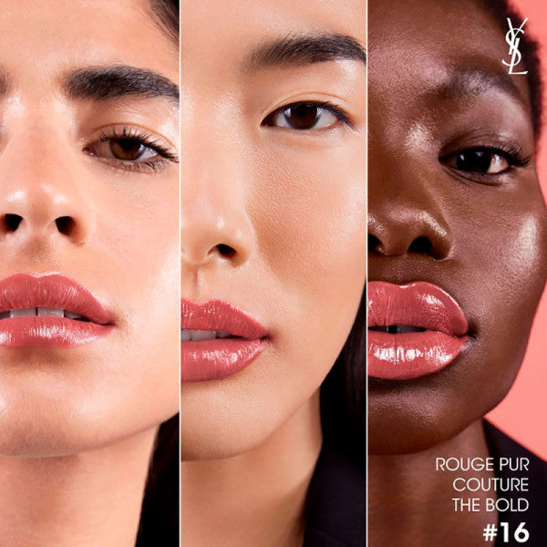 Rouge Pur Couture The Bold proporciona un color vibrante en una sola pasada para un brillo y una duración de 5 horas*. Se adhiere a los labios y se mantiene intacto sin correrse. Su brillo y color de alta pigmentación pero a la vez tan ligeros y flexibles. Enriquecido con un 40 % de aceite floral rojo suavizante de los Jardines Comunitarios Ourika de YSL Beauty y aceite de semilla de uva, proporciona una sensación de hidratación y confort durante 10 horas*.